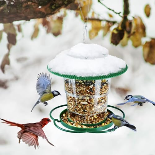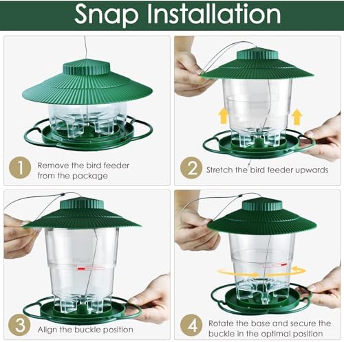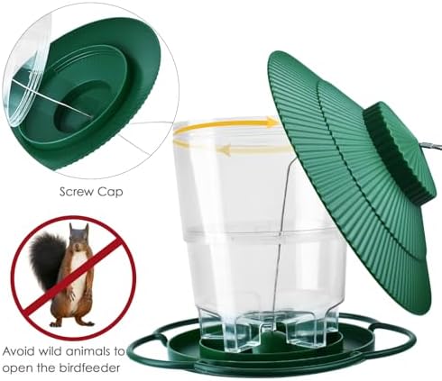 Large Capacity Bird Feeder: The bird feeder itself is made of high-quality transparent plastic makes it easy to observe the remaining bird feed and replenish it. Holds 3.1 pounds of bird seed and can be filled with a variety of bird-attracting seeds such as peanuts, black oil sunflower seeds, safflower seeds, and more.