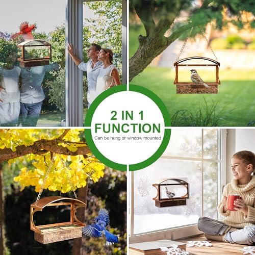 patio bird feeder a unique gift for the elderly, friend,parents, nature lovers and children, feeding birds in the yard is a pleasure with children, elderly parents and pets also enjoy watching the birds visit and eat. Attracts a variety of birds including finches, nuthatches, chickadees, sparrows, jays, cardinals, robins, woodpeckers, wrens, bluebirds, goldfinches,Northern Cardinal and more!