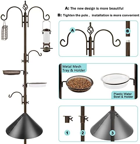 EASY TO ASSEMBLE BIRD FEEDING STATION: The wild bird feeding station installation is fairly simple and doesn’t call for any special tools. The bird feeder poles can be installed stably and firmly thanks to the snap design. Only by manually tightening the screws, you can simply alter the position of the two tiny hooks and two circular trays to whatever position you choose. Moreover, the bird bath tray and mesh tray may be removed straight for simple cleaning.