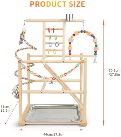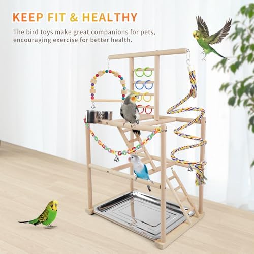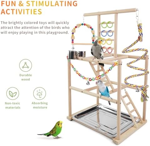The wooden parrots playgym stand provides colorful toys, ladder and swing for your pet birds to do more exercise.