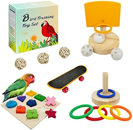 【Package Content &Product Guarantee Service 】If you are not satisfied for any reason, please fell free to contact us.HOORITO Bird Toys Sets include Bird Skateboard×1,Wooden block puzzles Toy ×1,Bird basketball toy×1,Bird stacking toy×1,Sepak takraw×3, 5pcs difference type bird entertaining toys to meet your various needs for parrots.