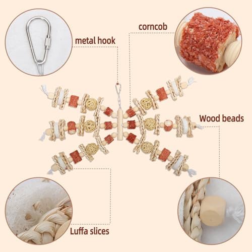 Product features: All materials come from gifts from nature, purely handmade, with moderate softness and hardness, allowing your beloved birds to fully exercise their physique during play. They will mercilessly destroy this toy with their cute little mouths and sharp claws, and derive joy from it