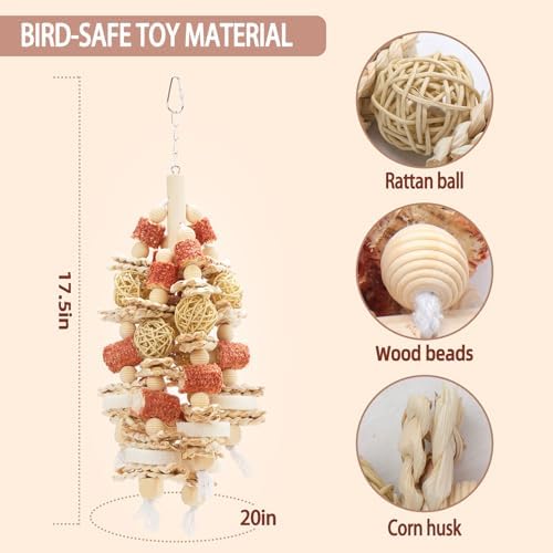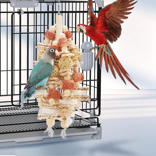 Pure natural corn sticks, corn peels, rattan balls, and wooden beads are Amazon bird chewing toys that can be hung as accessories in bird cages. As their health products, they can chew safely. During the climbing and biting process, parrots not only exercise their bodies but also pleasure their mood, allowing them to play happily and healthily!