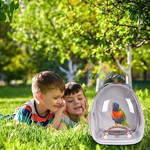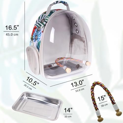 I do not like the iron cage which looks bulky, cold and unconcernedAstronaut space capsule eye-catching design, see through clear bubble. Lightweight, entire bird carrier backpack is only around 3 lbs.Free up your hands completely while traveling and hiking, perfect way to take birds out and keep them safe.Birds Love To Keep A Close Eye On Their Surroundings, we have the transparent bubble window Airline-approved, lay down the bird backpack and place under the seatPet Safe material and warm color of backpack.