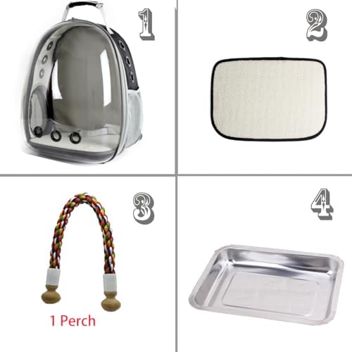 Package includes 1 bird backpack + 1 stainless steel tray + 1 velvet lined soft mat + 1 (ONE) Cotton rope perch