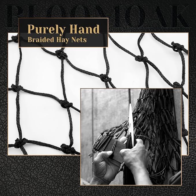 At Bloomoak, we meticulously handcraft each product with deep care for equine health and happiness. Our handwoven hay nets honor traditional craftsmanship, employing premium PE materials and intricate weaving techniques for exceptional strength and durability, far surpassing machine-made options.