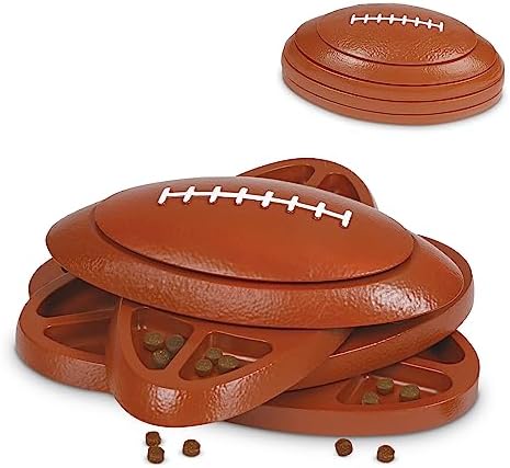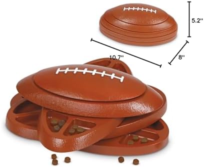 Spin, and Search!: Fill this dog treat puzzle’s 16 stacked football compartments with treats or kibble, then watch your dog spin and search for 4 layers of tasty rewards!