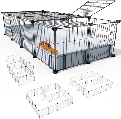 Customizable Design – Get creative with our 20 panels rabbit cage indoor, creating designated areas for rest and play! With four 12″x12″ panels and sixteen 12″x14″panels, offering 5.76 to 15.5 sq. ft. of space. Want it bigger? Combine sets for the ultimate habitat.