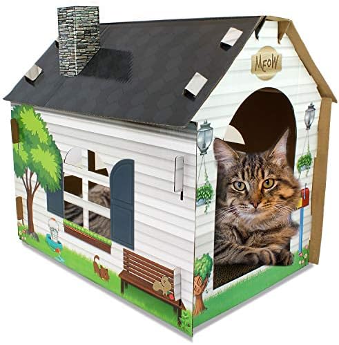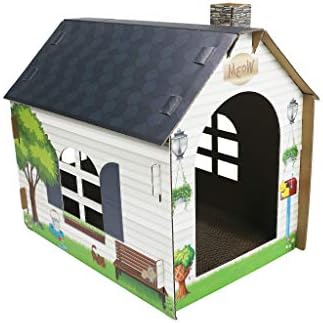 Give kitty a relaxing place to play and hide with this cardboard Cat House. When not in use, the cat house can be collapsed into a flat, compact size for out-of-the-way storage. Corrugated scratching surface Durable materials Risk Free Love it or Money Back