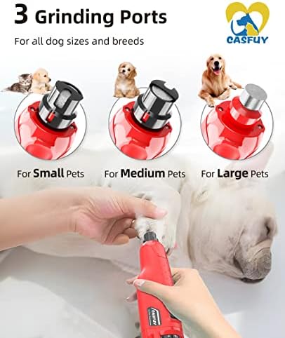 3 Grinding Ports to Groom with Precision and Ease: Casfuy dog nail trimmer has 3 ports. Small port is specifically designed for small pets, medium one is for medium-sized ones, and unprotected nail grinder works best with larger dogs’ nails.