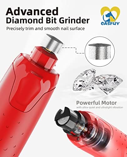 Low Vibration, Gentle and Quiet: Comes with advanced diamond bit, Casfuy quiet nail grinder delivers low vibration, making it a gentle and quiet grooming tool that dogs of all sizes can enjoy, offering your pet a comfortable and relaxing grooming experience.