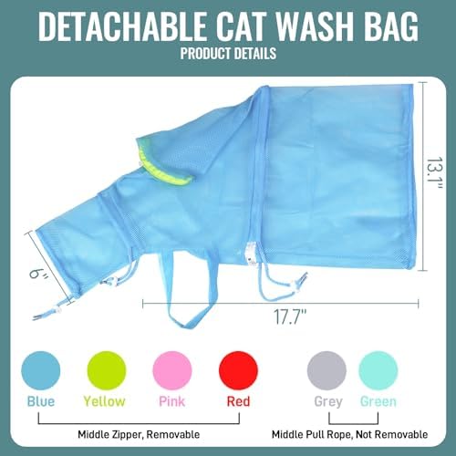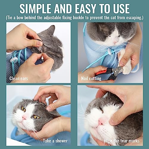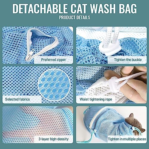 【Drawstring and Zippes Design】Adopts two top zipper, two front zippers and two rear zippers design that it allows your cat to release 4 paws at a time, which makes it easy for you to trim cat’s nails, and with 2 adjustable drawstrings for fixing your cat, preventing you from being bitten or scratched by your cats. Most important is that all the zippers have upgraded. The zippers can stay in place you want and you can keep the zippers zipped or unzipped during the bath.