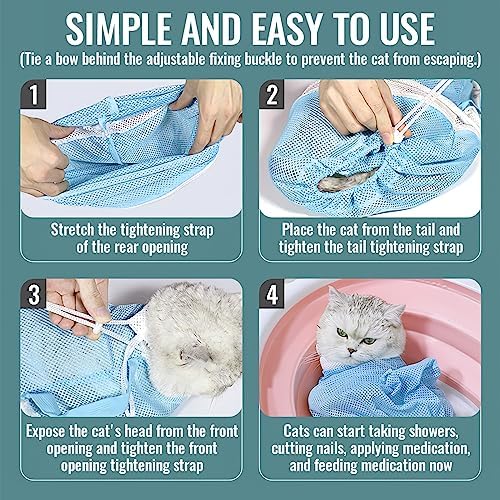 【Good helper】the cat bathing bag set is a good helper for you when you do washing and grooming for your pet, the cat net bag can cover the whole body of the pet, make you easily and effectively control your pet, then you can happily wash or massage for your cats, and the cat shower net bag can help you avoid scratches from your cat and dog, making the pet nail trimming, bathing process easier and safer for you, and making your pet comfortable and relaxed.
