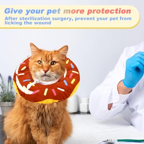 Adorable and unique: Designed in a unique and cute donut shape making it resemble a pet ornament rather than a surgical collar for pets. Your pet must be a million times happier with this. Besides, the cat donut collar with pillow-like comfort can be used as a neck pillow when they nap, which helps him/her forget the pain of the woun