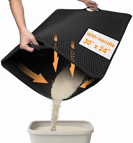 Giant Size Stops Litter Scatter: This XXLcat litter mat’s 30″x24″ surface holds two jumbo boxes (or one mega box + play space). 360° wide coverage + raised edges contain even the wildest digging – thekitty litter matmulti-cat homes (2-4 cats) trust for spotless floors.