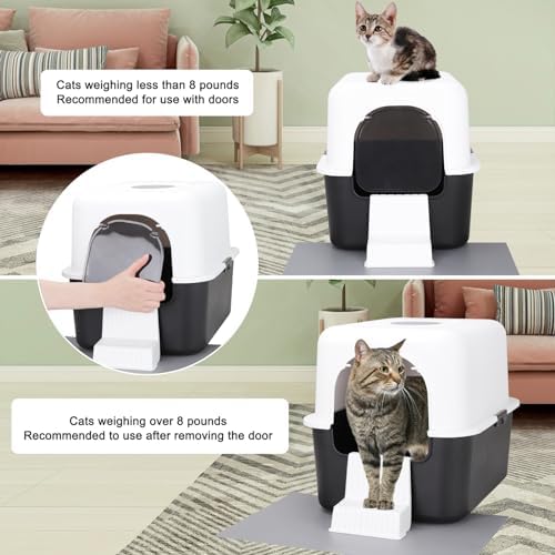 LARGE CAPACITY:Llitter box is suitable for cats 8 pounds, providing more privacy for cats.cats over 8 pounds can choose our other large size litter box.Convenient for cats to turn around and use without space restrictions, the enclosed litter box makes cats feel more comfortable and safe. Points release their playful nature and increase their fun and enjoyable experience. It can also reduce odor and keep the litter box clean.