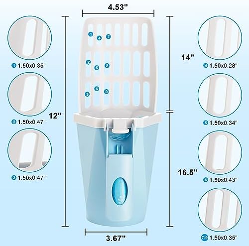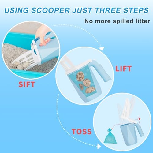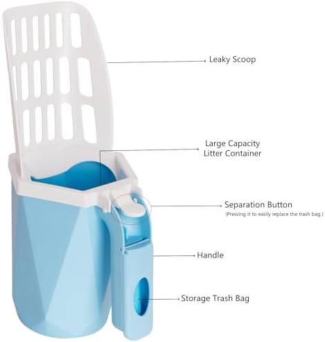 One-Hand Operation Cat Litter Scooper : the neat bayonet connection between the cat poop scooper shovel sifter and the trash bin makes scooping and cleaning more easily. Just detach or fix the connection by pressing the button. Then we can scoop cat poops from litter box with one hand. And never forget to put the waste bag in the trash bin of the portable cat scooper before scooping.