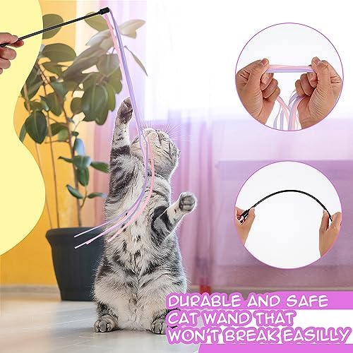 Great Gift for Cat Lovers: Our cat interactive rainbow wand toys are an ideal gift for the pet lover or your cat which can bring more fun to your cats and the cat lovers. Enjoy hours playing with your cat in a super fun way with just a flick of your wrist! What a great way to keep your cat healthy and fit for life!