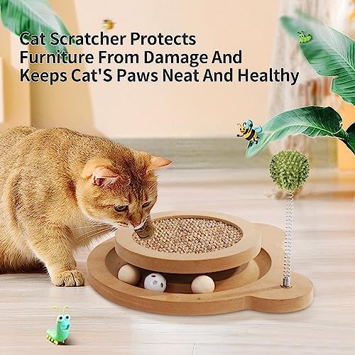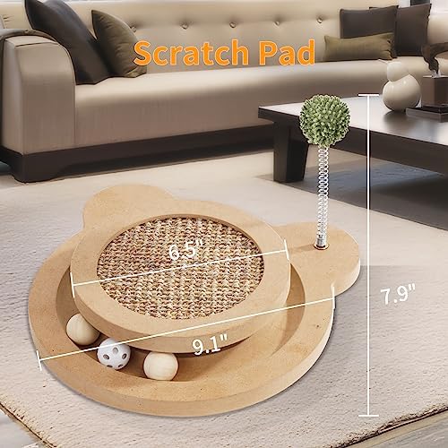 【Stylish Design to Blend with Your Home Decor】 Made of natural sisal rope and high-density board, Our interactive cat toy is durable and looks great, The wooden design blends in with furniture, Cat scratching post fits different types of home decor.