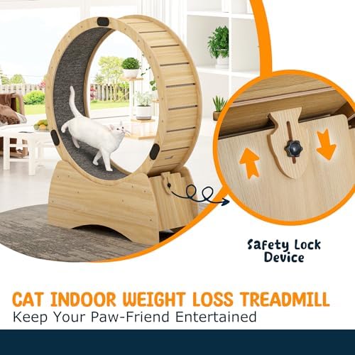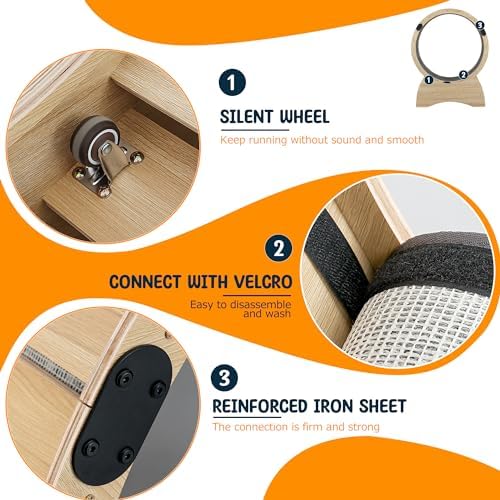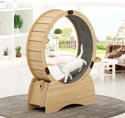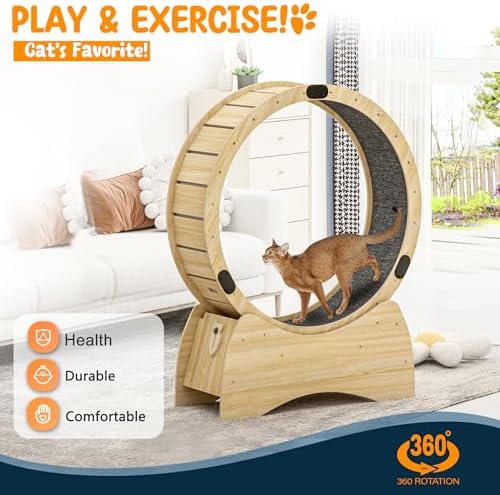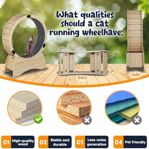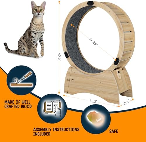 【sturdy and durable】The Ferris cat wheel is made of solid wood with stainless steel connections for all parts, which makes it very sturdy, so you don’t have to worry about how long you’ll be using it, making it a great value for money. The size of the cat exercise wheel is 38.9*13.7*50 with an inner diameter of 39.4 inches, suitable for cats of all sizes.