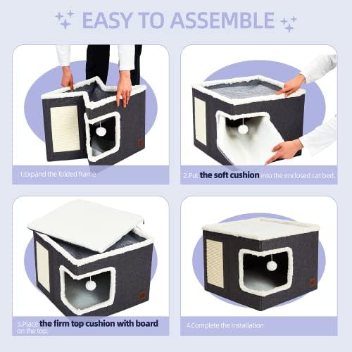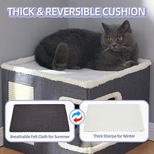Easy To Fold & Care: This indoor cat houses & condos can be assembled quickly and folded into a flat shape for easy storage and travel making it the perfect gift for your feline friend. The removable cushions feature reversible, machine-washable covers that provide all-season comfort.