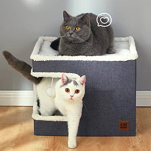 Indoor Cat House: CATBOAT cat condo has a large space, measures 16.5*16.5*14inches, which is an ideal indoor cat houses for cats, Kitten, Kitty, dogs, rabbits, and other pets under 20 lbs to use, Additionally, this can also be used as a feral cat house.