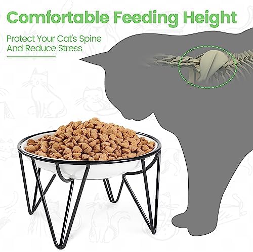 【Comfortable Feeding Height】- Designed with an elevated structure, these raised cat food bowls provide an ideal feeding height for cats, kitten and small dogs, reducing strain on their necks and minimizing the chances of food reflux and vomiting.