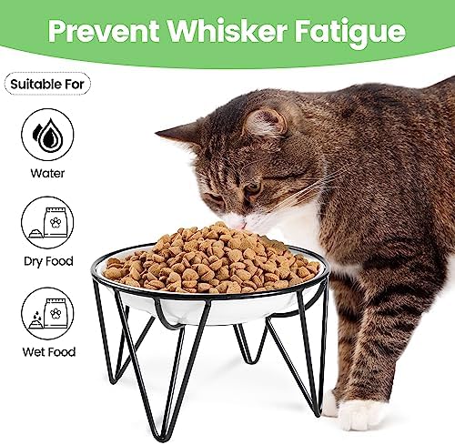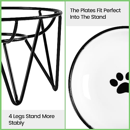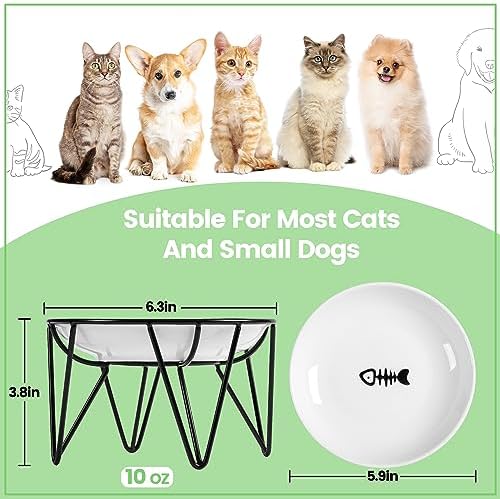 【Bowl Paired with Stand】- These ceramic cat bowls come with a sturdy black metal stand that is in elegant crown style and measures D6.3 inches x H3.8 inches, and have an appropriate capacity of 10 ounces.