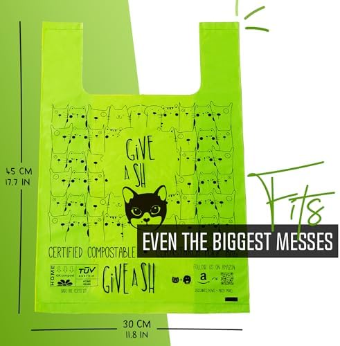 100% HOME COMPOSTABLE LARGE CAT LITTER BAGS – Our XL cat litter bags are ethically sourced and carefully manufactured from 100% botanical plant components. We use only Cornstarch, BPAT (compostable polymer), and edible glycerin in the nature-based creation of our cat litter bags. All our products are TÜV AUSTRIA Home Compost Certified to be of NF T51-800 standards! Because we give a shhh