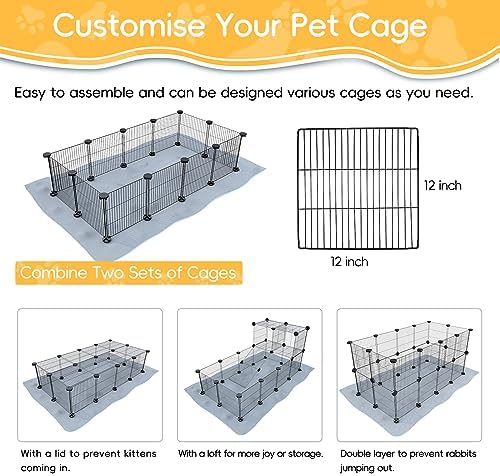 Expandible y conectable: Puedes expandir la jaula agregando más paneles o conectarla a otras jaulas compatibles para crear varios hábitats para diversas mascotas, como cobayas, conejos, gatitos, cachorros, erizos, chinchillas, hámsters.