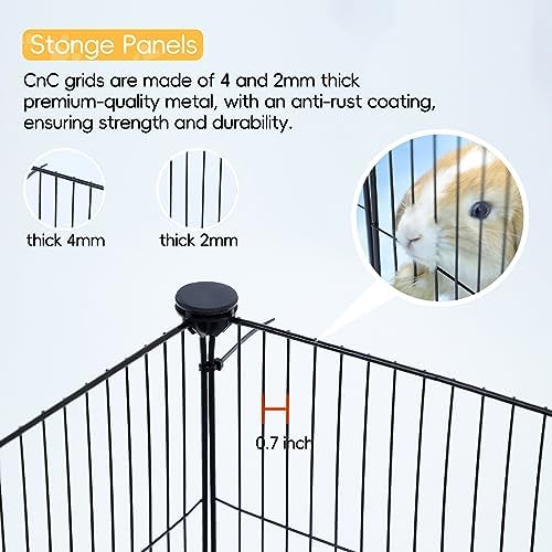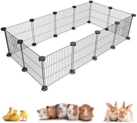Specifications: Material: Metal Panel Quantity: 14 Panel Dimensions: 12×12 inch Color: Black Included Accessories: Connectors, Assembly Instructions Suitable for: Guinea Pigs, rabbits, kitty, puppy, hedgehog, chinchilla, hamster, Small Animals Provide your beloved guinea pigs with a spacious and secure home with our Premium C&C Guinea Pig Cage. Its sturdy metal panel construction, customizable design, and easy assembly make it the perfect choice for guinea pig enthusiasts. Buy now and give your pets the ultimate living space they deserve! Description: Create a comfortable and secure living space for your adorable bunny with our Premium small animal playpen. Designed with your pets’ well-being in mind, this spacious cage provides the perfect environment for them to thrive and play. Crafted with high-quality metal panels, this modular cage ensures durability and flexibility, allowing you to customize it according to your needs. guinea pig cage playpen habitat house for 2 large small animal cage indoor c and c cnc metal grid mesh wire cheap black fence enclosure for hedgehog chinchilla rabbit bunny 7.5 8 square feet diy crate build portable x play pen starter kit