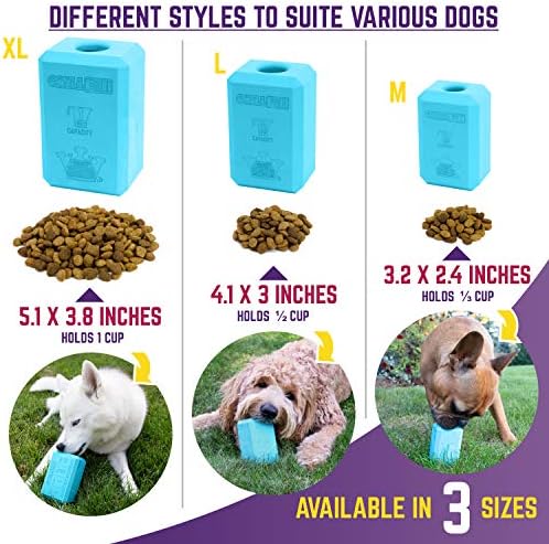 “Frozen Feeding”: Just fill the treater with kibble, add a bit of water and store it in the freezer. The next time your loyal pooch deserves a reward, you’ll have one ready to go!
