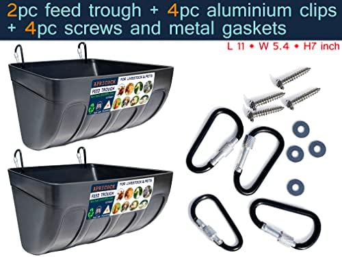 SET INCLUDES: 2pack feed trough,4pcs Clip,4pcs Pointed head screws, can be suspended from wire mesh, as well as mounting on fences or walls, very easy to use.