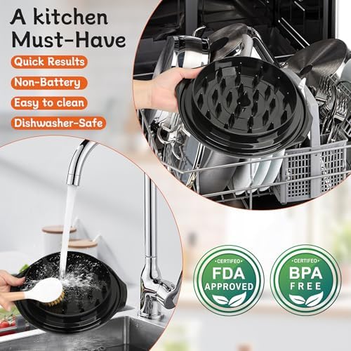 【Diamond Design & Ergonomic Handle】The handle and top cover are both designed with high quality diamonds, which showing a diamond-like luster with the change of light. The ultra-transparent cover can see the degree of shredding more clearly. The ergonomic handle and slot design ensure comfortable and security, make you enjoy the pleasure of cooking