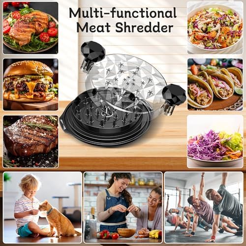 【Cooking Essentials & Gift-Ready】A must-have kitchen gadget for home cooks and fitness enthusiasts. Use the Chicken Shredder machine making chicken salad, tacos, burger stuffing, BBQ sandwiches, burritos, casseroles, pulled pork etc.Besides, pet lovers can use this meat machine to shred meat finely for pet food. Packaged in a gift box, An ideal practical gift for your family or friends