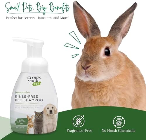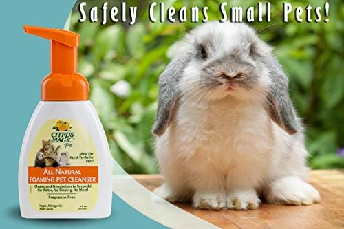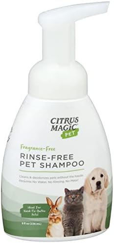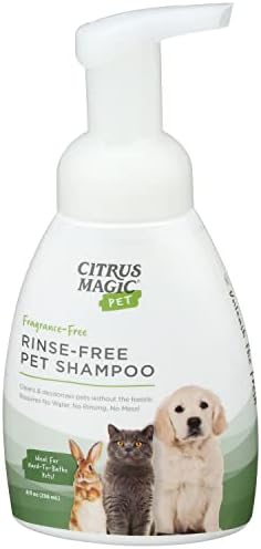 Citrus Magic’s Rinse-Free Pet Shampoo is the perfect cleaning product to use for hard-to-bathe pets. This pet shampoo replacement has a gentle formula created with vegetable enzymes. These enzymes quickly and effectively clean and deodorize your pet’s coat. Citrus Magic’s Rinse-Free Pet Shampoo is perfect for ferrets, hamsters, rabbits, and kittens. The Rinse-Free Pet Shampoo is also a great way to help remove odors from your pet’s coat in between regular washes. The 8-ounce bottle features an easy-to-use, foaming pump which dispenses the cleanser into your hand allowing you to easily work it through your pet’s coat. Citrus Magic has created a line of pet odor eliminating products that promote a safe and natural, yet effective alternative to using harsh chemicals around those beloved members of any family.