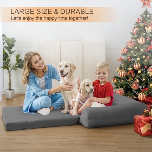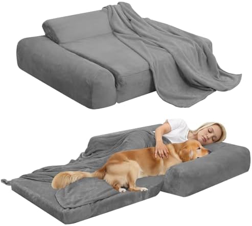 Foldable Design: This foldable dog bed transforms from a stylish couch to a spacious bed, space-saving and versatile for any room. It also provides ample space for large pets or two small ones and adapts, fits comfortably in your car’s back seat