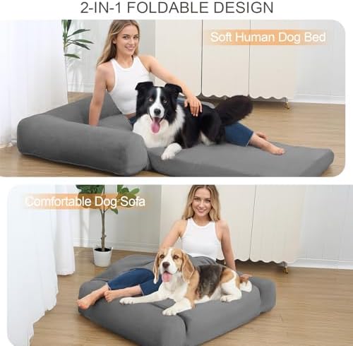 Effortless Maintenance & Use: Our human size dog bed ready to use with no assembly needed. Unpack from the vacuum-sealed bag, pat, and shake until fully fluffed. The removable cover is machine washable at low temperatures for easy cleaning