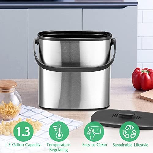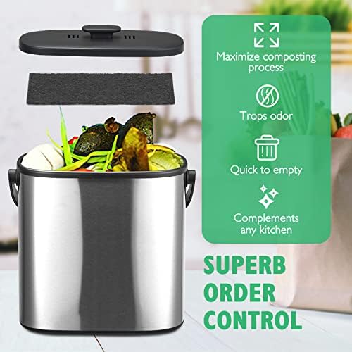 Perfect Size: Measuring 10.1 x 9.1 x 6.6 inches with a 1.3 gallon capacity, this kitchen compost bin can hold large amounts of food scraps while taking up minimal space in your kitchen. It is also a great gift choice for friends housewarming, for those who love to cook.