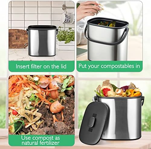 Durable & Rust Proof: This kitchen compost bin is made of high quality stainless steel, crack and rust resistant. One-piece manufacturing technique ensures seamless molding with no seams. Easy to clean, it can be cleaned quickly with soap and water.