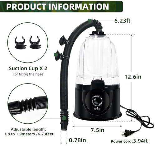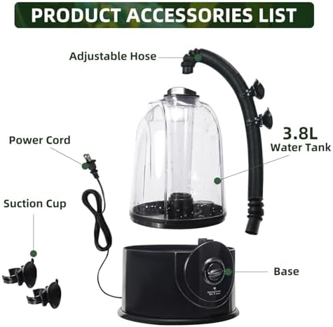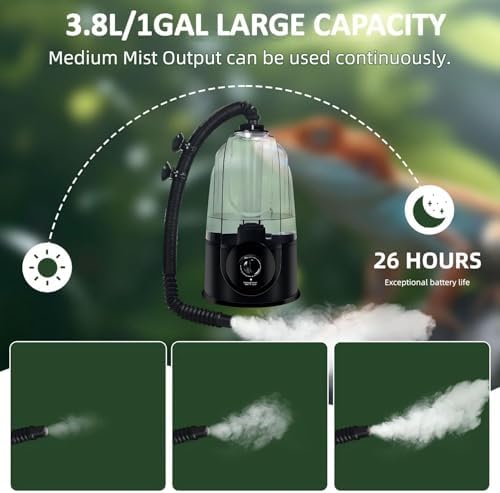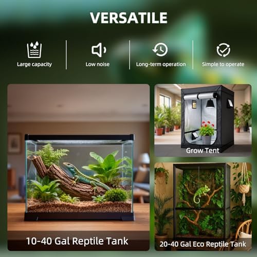 FINE MIST & SILENT RUN: Ultrasonic atomization reptile humidifier, fine mist, uniform humidification without water accumulation. Low noise design (<35dB) does not disturb the rest of reptiles, especially suitable for humidification needs at night.