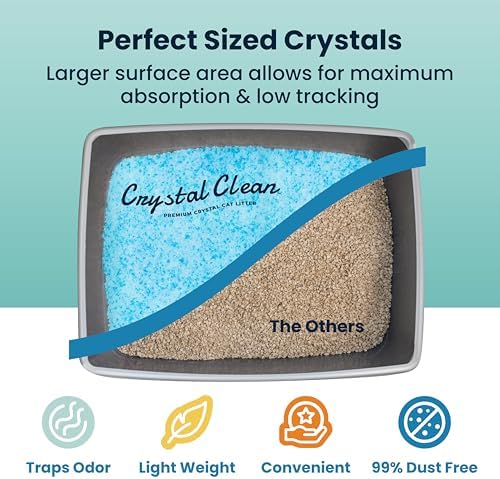 99.9% Dust-Free: Crystal Clean creates almost no dust when poured properly, making it a low dust cat litter that’s ideal for allergy sufferers. This lightly scented cat litter provides a clean and gentle solution for sensitive households.