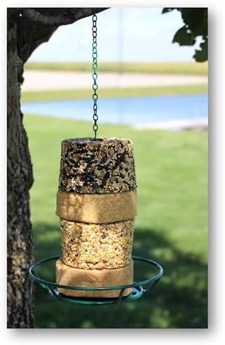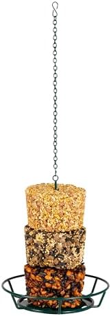 The C&S Stack and Cylinder Feeder allows you to offer a variety of stackable wild bird foods at an excellent value. This versatile feeder accommodates seed cylinders, seed stacks, seed snacks, suet stacks, and more. Stack your way to happy birds! Our feeders are designed with bird comfort in mind. The vinyl coating ensures that birds’ feet will not freeze to the feeder in winter or burn in summer. Conveniently, the feeder comes with a hook and chain for quick and easy hanging. The feeding pole can be unscrewed for an additional way to refill the bird food. The open, roof-free structure allows multiple birds to visit at a time and eat the food from every angle.