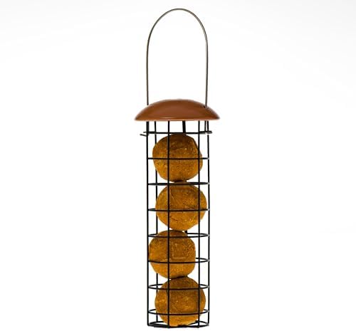 Enhance your bird-watching experience with the C&S Suet Ball Feeder, a stylish and functional addition to your wild bird feeding station. Designed with generous openings, this feeder allows wild birds to easily access their favorite high-energy foods. Its eye-catching copper-colored roof adds a touch of elegance to your yard. Accommodating up to 4 C&S suet balls, this feeder provides long-lasting bird feeding, attracting a variety of species, including woodpeckers, nuthatches, chickadees, and other suet-loving birds. Try all the C&S suet dough ball varieties like the C&S Peanut Delight Suet Dough Balls and the C&S Hot Pepper Delight Suet Dough Balls. Experience the joy of bird-watching with the C&S Suet Ball Feeder, a combination of quality craftsmanship and great value.