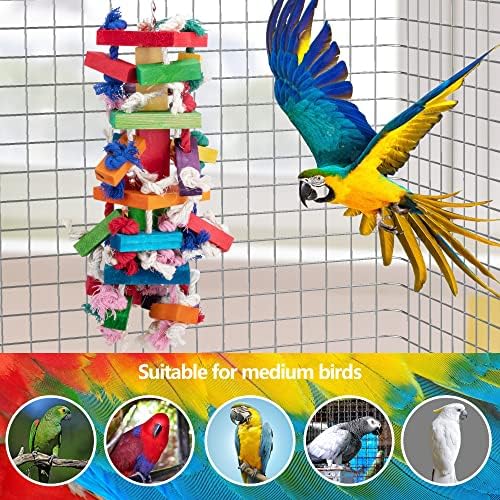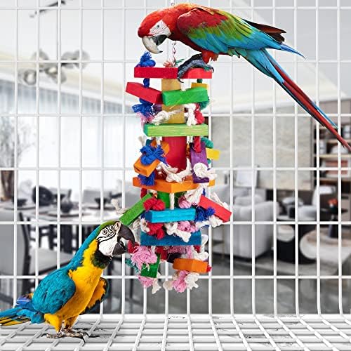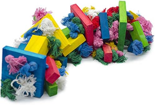 Deloky Bird Block Knots Tearing Toy -19.7 inch Multicolored Natural Wooden Parrot Chewing Toy Suggested for Macaws cokatoos,African Grey and a Variety of Amazon Parrots