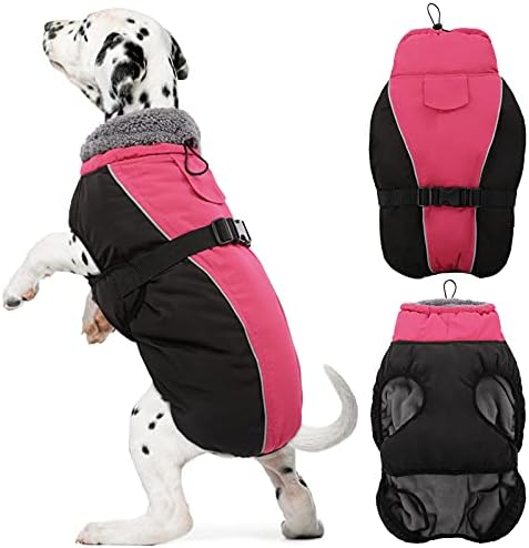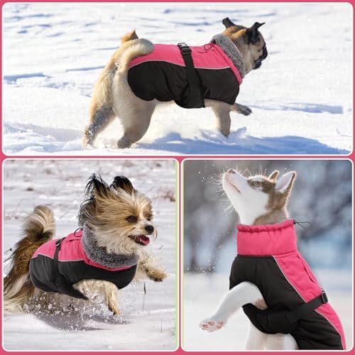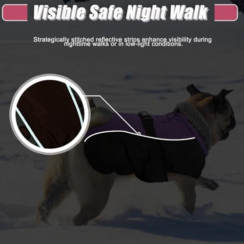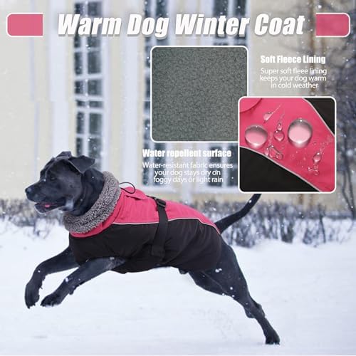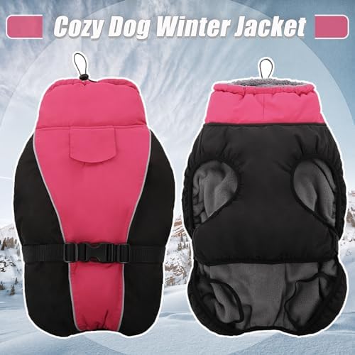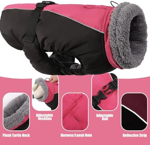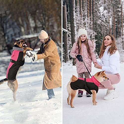 【Windproof and Waterproof Features】DENTRUN dog cold weather jackets are designed to brave the elements. The windproof turtleneck and adjustable neckline keep the cold at bay, while the water-resistant fabric ensures your dog stays dry on foggy days or light rain, making it ideal for various outdoor activities. The dog snowsuit, crafted from thick fleece + cotton, keeps your pet warm in the cold winter/snow.
