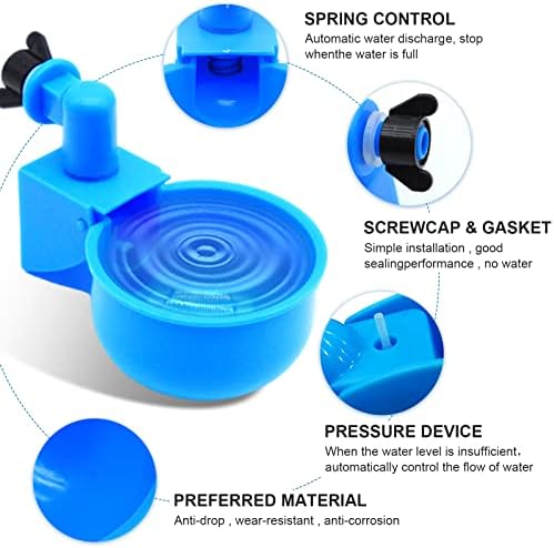 DIY Chicken Feeders and Waterers Set with 6 Ports,6 Chicken Water Cups,6 Chicken Waterer Nipples,No Waste Rain Proof Poultry Feeder Kit for Buckets, Barrels (Appearance Patent)