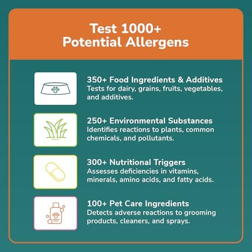 Tests for 350+ Allergens – Comprehensive screening for common irritants including foods (chicken, beef, grains), environmental triggers (grass, pollen, mold), and household items (detergents, fabrics, cleaning products).