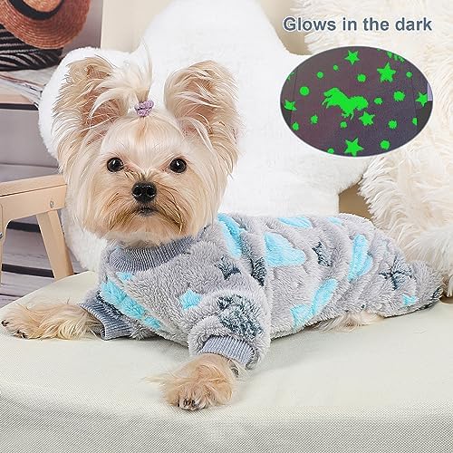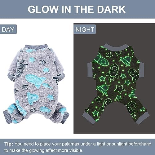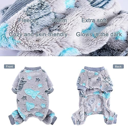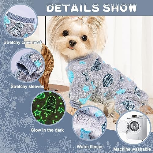 【GLOW IN THE DARK】The small dog sweater are printed with glow-in-the-dark spaceship stars moon sky horse print, put in the dark will glow, For the glow-in-the-dark effect you need to place the puppy sweater under the light or sunlight for a few minutes in advance, sweater for small dogs suitable for winter daily wear and nighttime pajamas, Dog pjs but also a good prop for taking pet photos and a good choice for dog birthday gift.