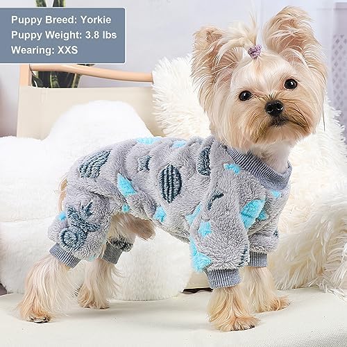 ❄️【Soft & Warm】This small dog sweaters onesie is made of super soft and skin-friendly fleece fabric, very warm and lightweight, your dog will love this fluffy puppy pajama onesie, wear the puppy jumpsuit sweaters to provide a cozy layer of warmth for cold days and nights, Small dog sweater keep your pet warm and cozy all night long. Chihuahua sweater teacup clothes Yorkie clothes add charm to your dog and make your dog very cute while sleeping!